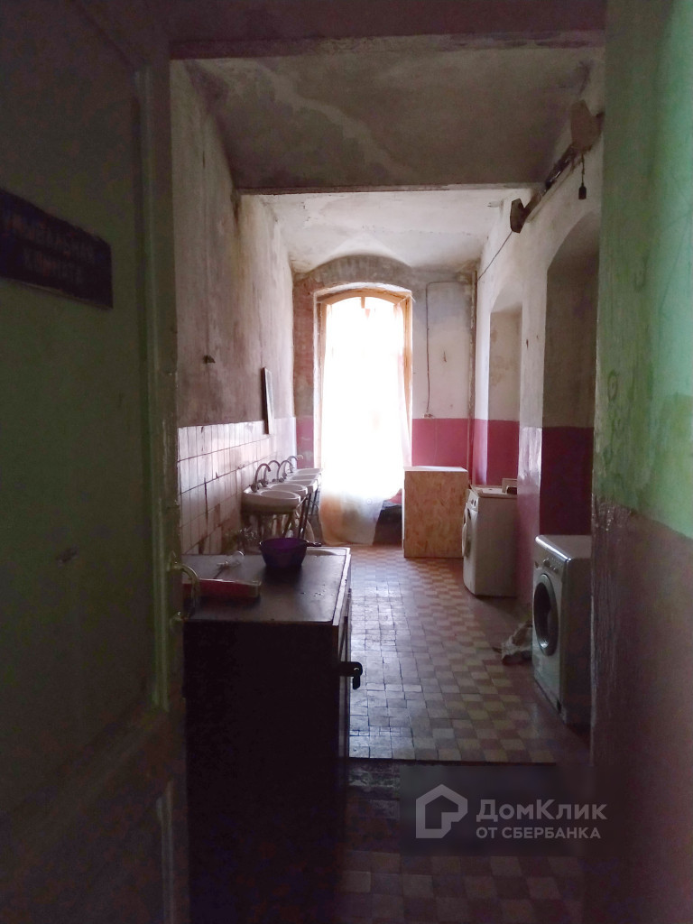 В помещение входят две изолированные комнаты, большая прихожая и собственная кухня. Везде, кроме прихожей, сделан ремонт. Дом старинный, капитальный, с мощными стенами. На этаже расположены общая оборудованная плитами кухня, умывальня со стиральными машинами, мужской и женский туалеты, просторный коридор.