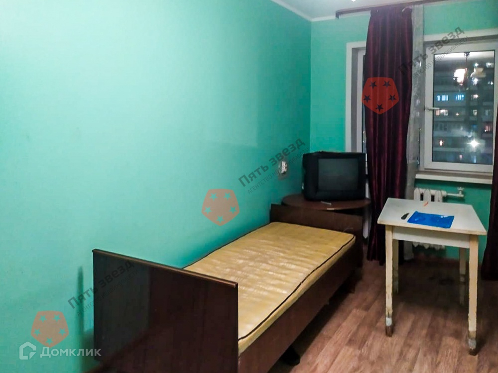 Комната 17,4 м² в трехкомнатной малонаселенной квартире, общей площадью 60 м². 5/5 эт. панельного дома. Высота потолков 2,5 м. Места общего пользования в хорошем состоянии. Комната просторная, правильной формы. Окна выходят на северо-запад. Во всей квартире установлены пластиковые окна. Обычный ремонт. Разделены счета. Комната не угловая.