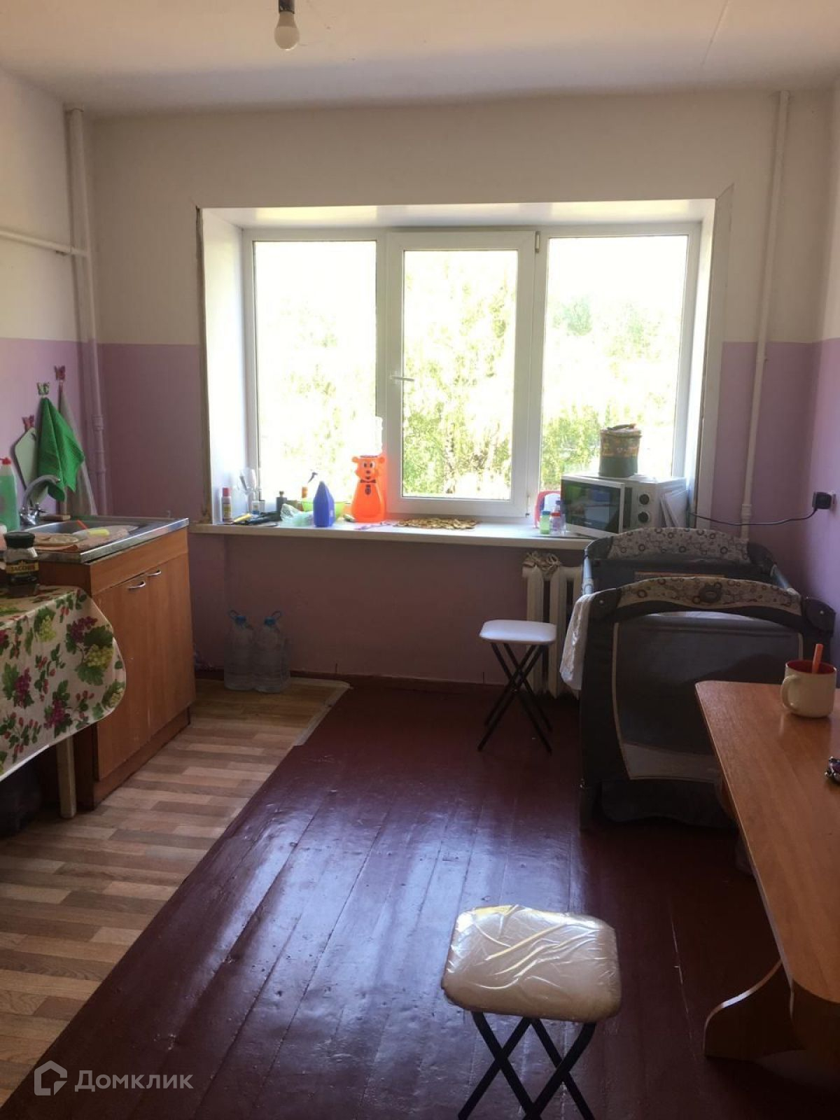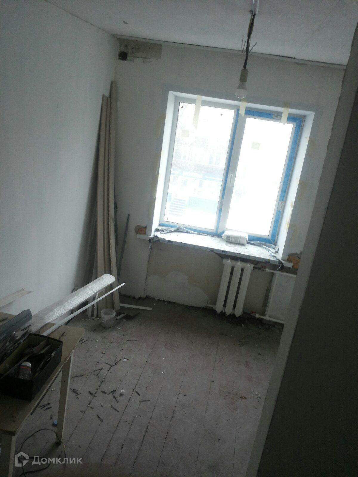 Состояние ремонта комнаты -  предчистовая отделка.. Окно пластиковое. Полы деревянные. Дверная коробка демонтирована.