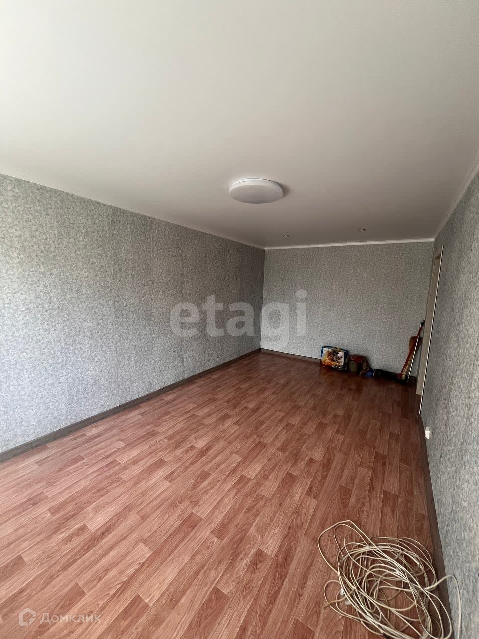 В комнате выполнен свежий ремонт, а именно поклеены обои, ленолиум, плинтуса, натяжной потолок и светильники.