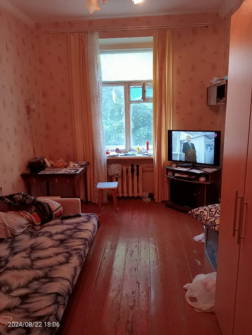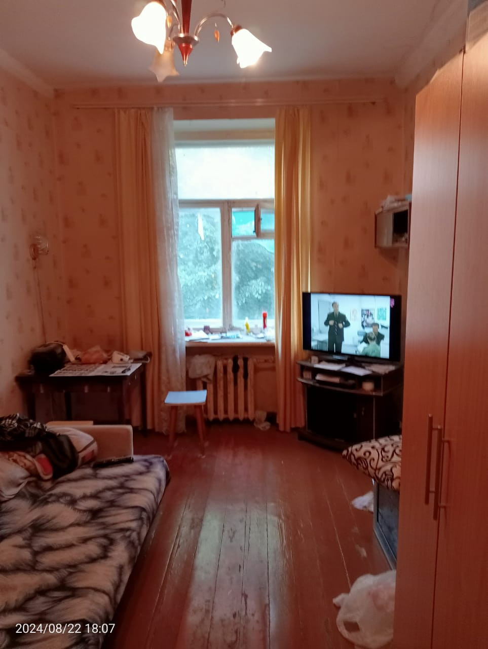 Комната 14 кв.м. в трёхкомнатной коммунальной квартире. Состояние нормальное. 3 этаж пятиэтажного кирпичного дома.