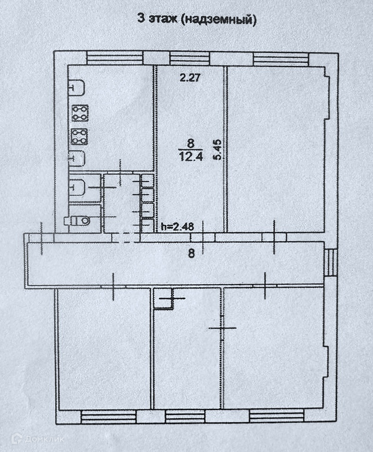 Комната 12,4 м² в коммунальной квартире на 3/3 этаже.