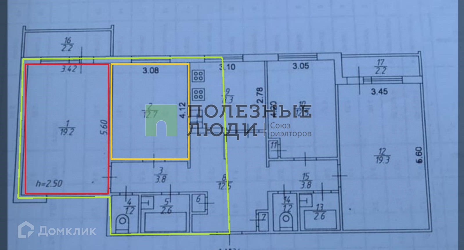 Жилая площадь 19.2 м2
