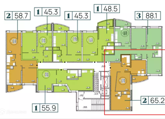 Общая площадь: 65.2 м2