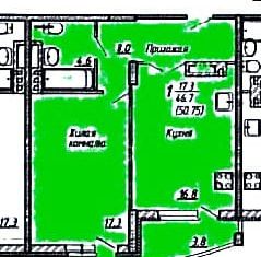 Общая площадь: 46.7 м2