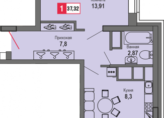 Общая площадь: 37 м2