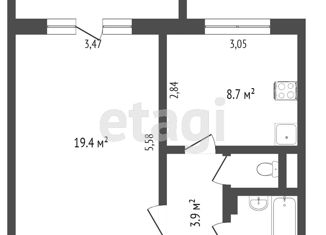 1-ком. квартира на продажу, 32.7 м2, Новочеркасская улица, 50