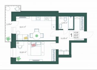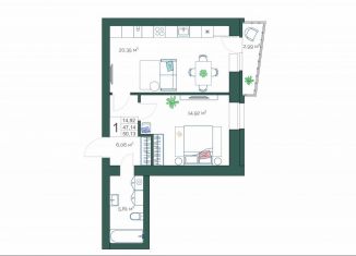 Продажа однокомнатной квартиры, 50.1 м2