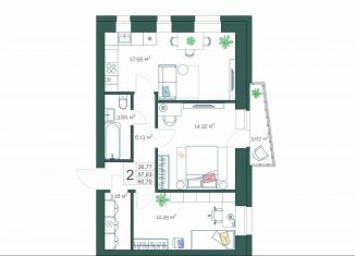 Продажа 2-ком. квартиры, 75.6 м2