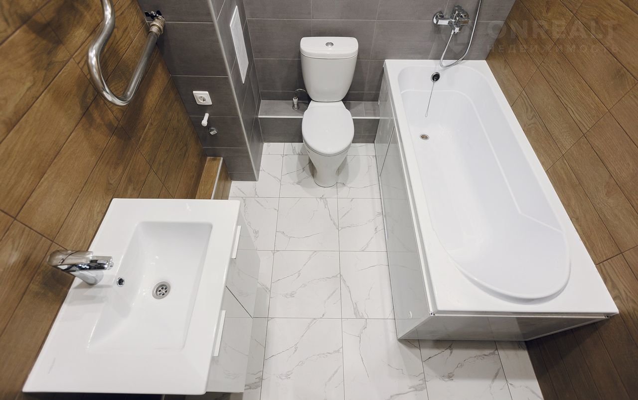 • полы: плитка в ванной и ламинат в комнатах