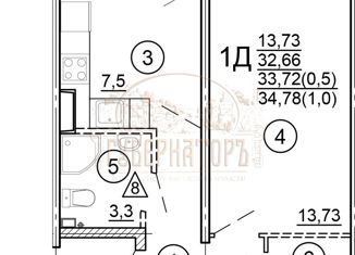 Продается 1-комнатная квартира, 34.78 м2, Новочеркасская улица, 50