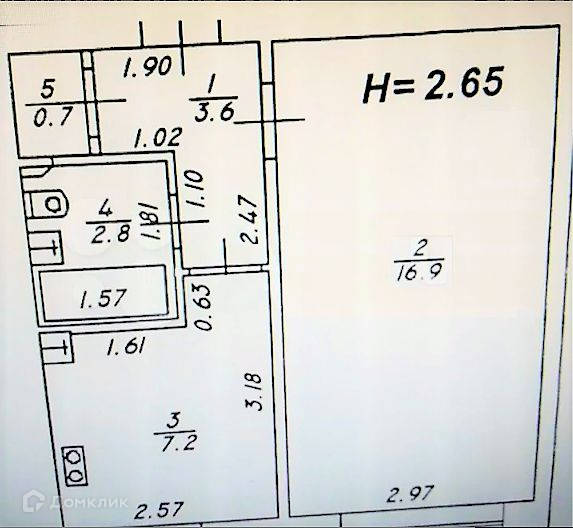 Общая площадь 31.2 м2