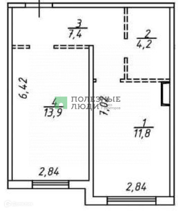 Жилая площадь 14 м2