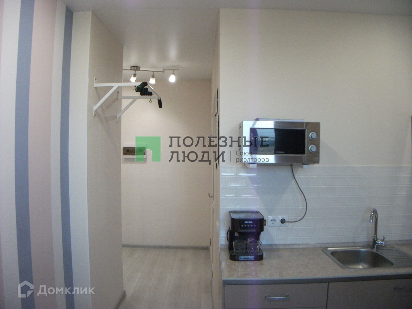Кухня - 9 кв.м., комната – 17,2 кв.м., просторная прихожая с зеркальным шкафом купе – 9,1 кв.м.: ламинат, натяжные потолки, точечное освещение.