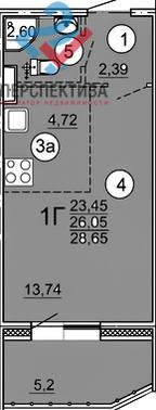 Общая площадь 28.4 м2