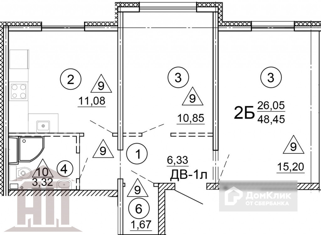 Общая площадь 48.45 м2