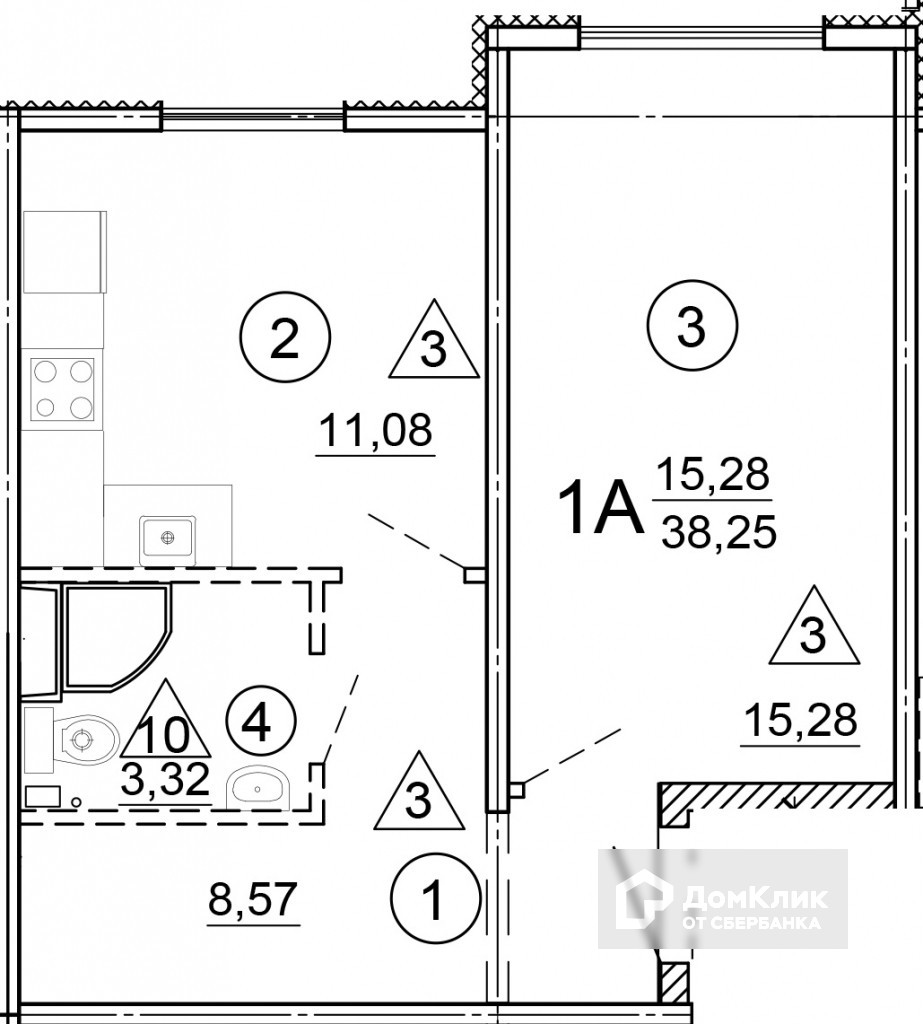 Общая площадь 38.25 м2