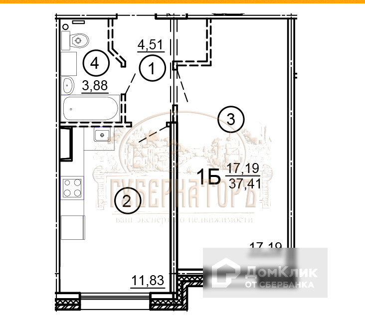 Общая площадь 37.41 м2