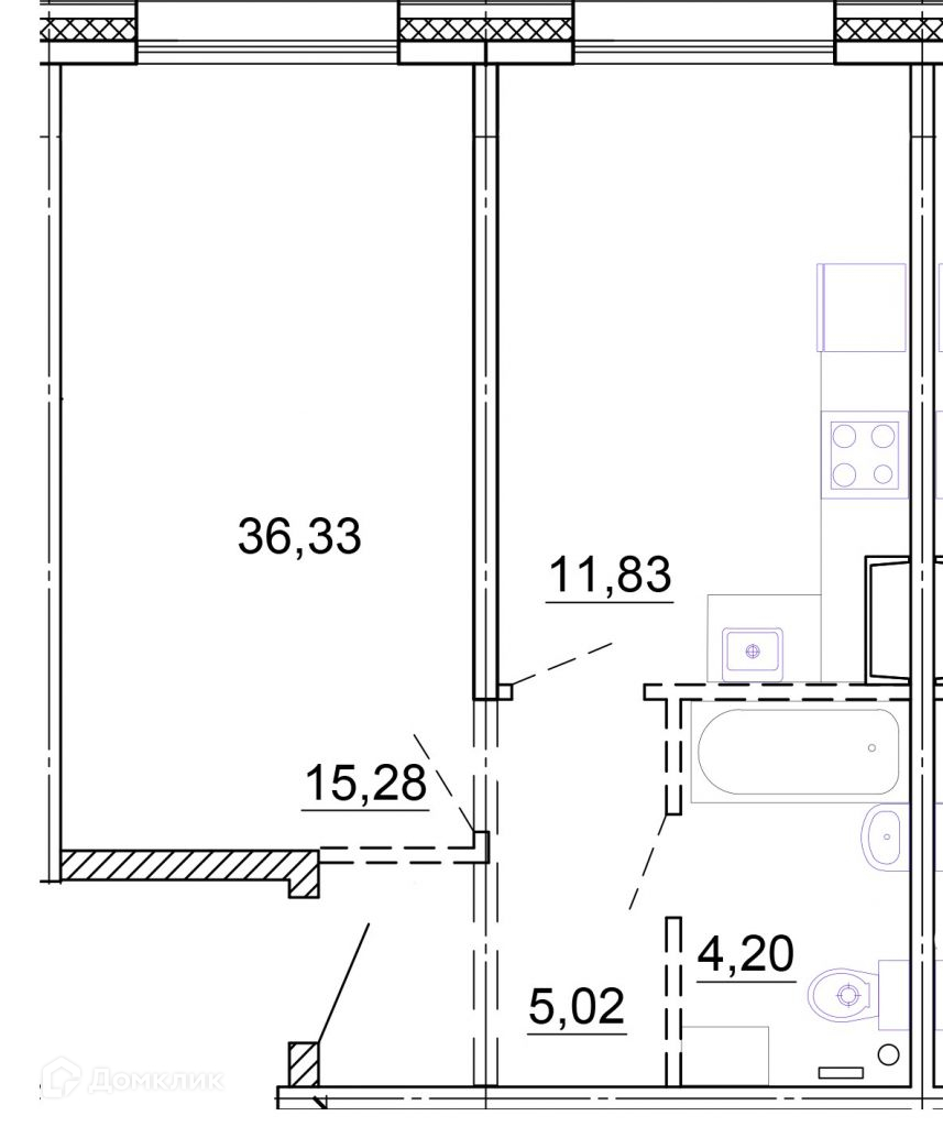 Общая площадь 36.4 м2