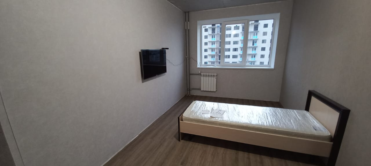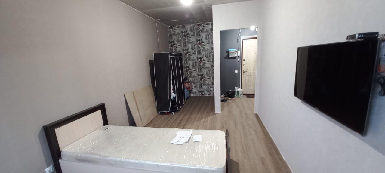 Квартира формально новая, сделали ремонт и месяц пожили. Все чистое, новое. Вид с балкона на город. Смотрели салют, все отлично видно.
