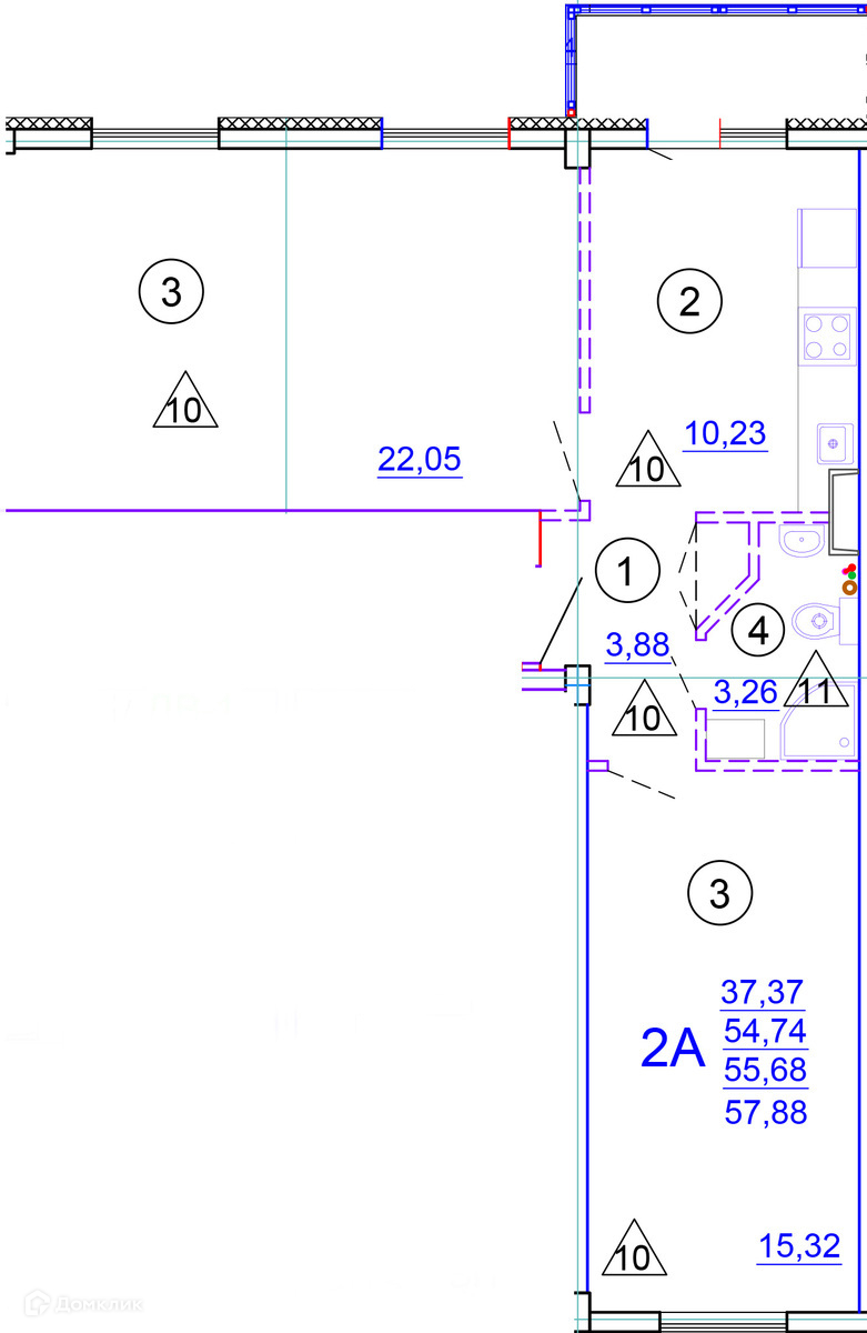 Общая площадь 57.9 м2