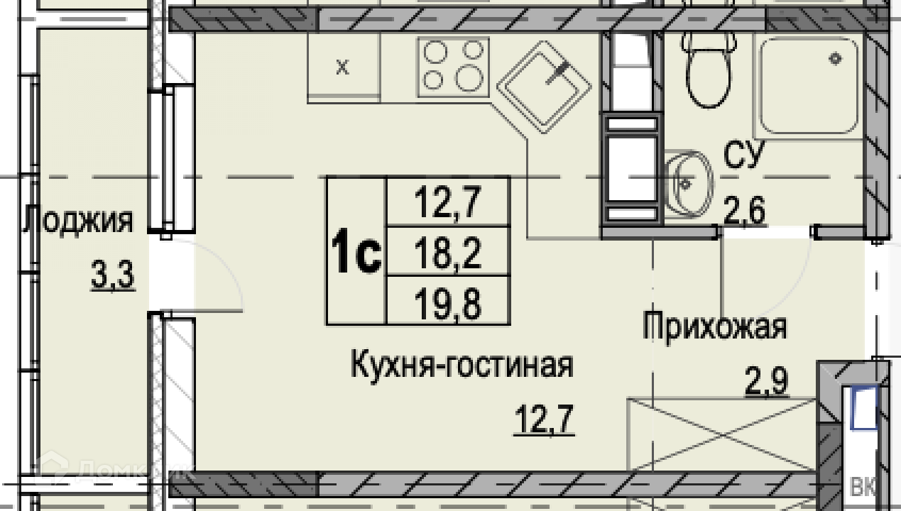 Студия 19,8 с готовым ремонтом в современном жилом комплексе в микрорайоне Мамулино.
