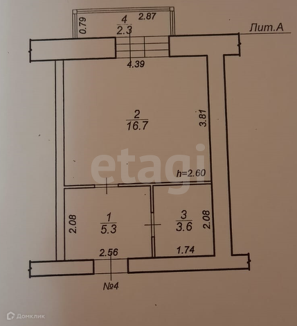 Характеристики квартиры: общая площадь 27,9 м2, комната кухня 16,7 м2, просторный коридор 5,3 м2, санузел 3,6 м2, застекленный балкон 2,3 м2!