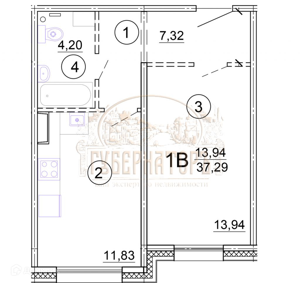 Общая площадь 37.29 м2