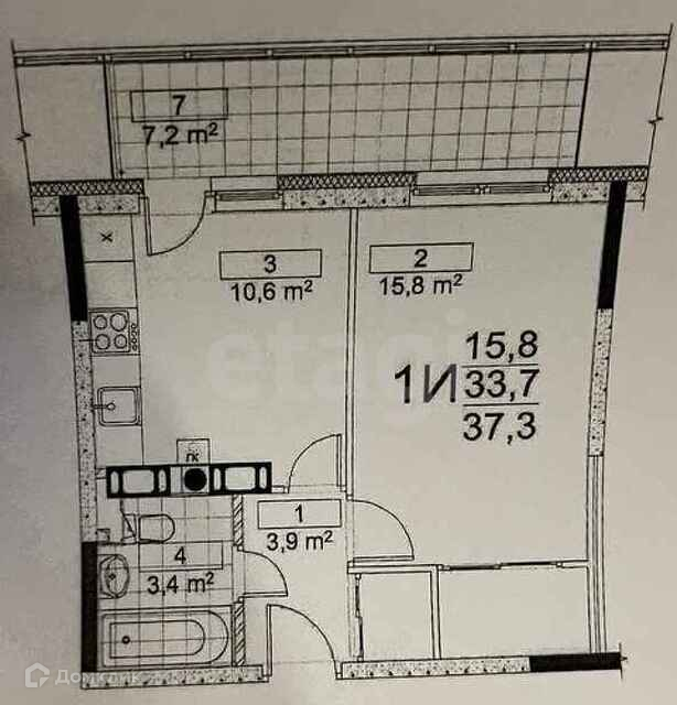 Общая площадь 37.3 м2