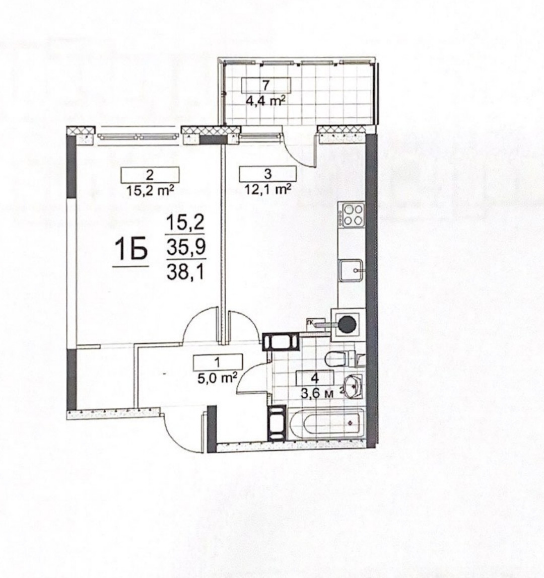 Общая площадь квартиры:38,1 кв м