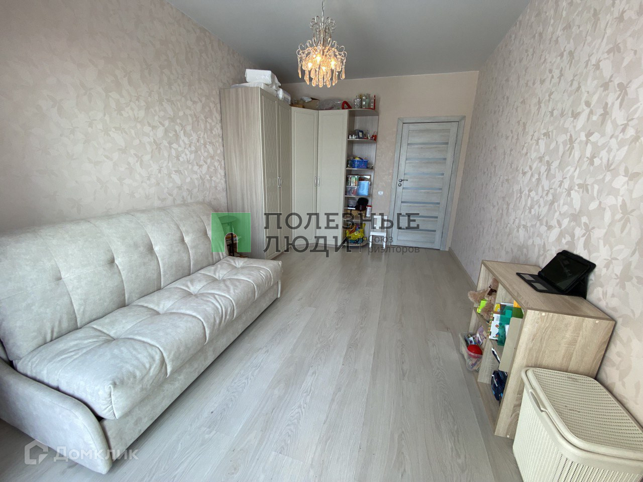 Выполнен качественный ремонт: на полу ламинат в комнатах, плитка в ванной и туалете, коридоре и на кухне. Натяжные потолки во всех помещениях. Во всех комнатах панорамные окна. Остается кухонный гарнитур и два шкафа.