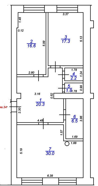 - комнаты 16,6 кв.м и 17,3 кв.м