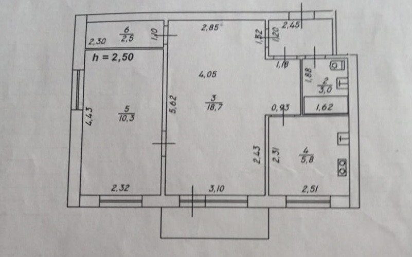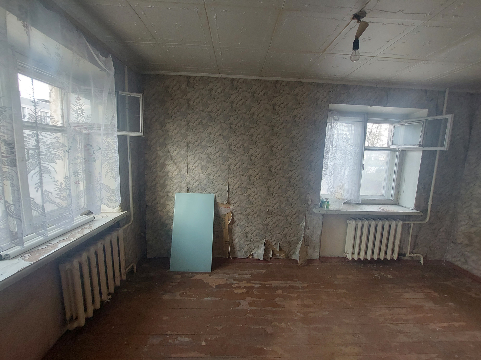 Общая площадь 43,4 кв.м., комнаты смежные 18,7+10,3 кв.м. - имеется возможность изолировать, кухня 5,8 кв.м., с/у совмещенный, балкон из комнаты. Окно ПВХ-балконный блок, остальные окна деревянные, кладовая.