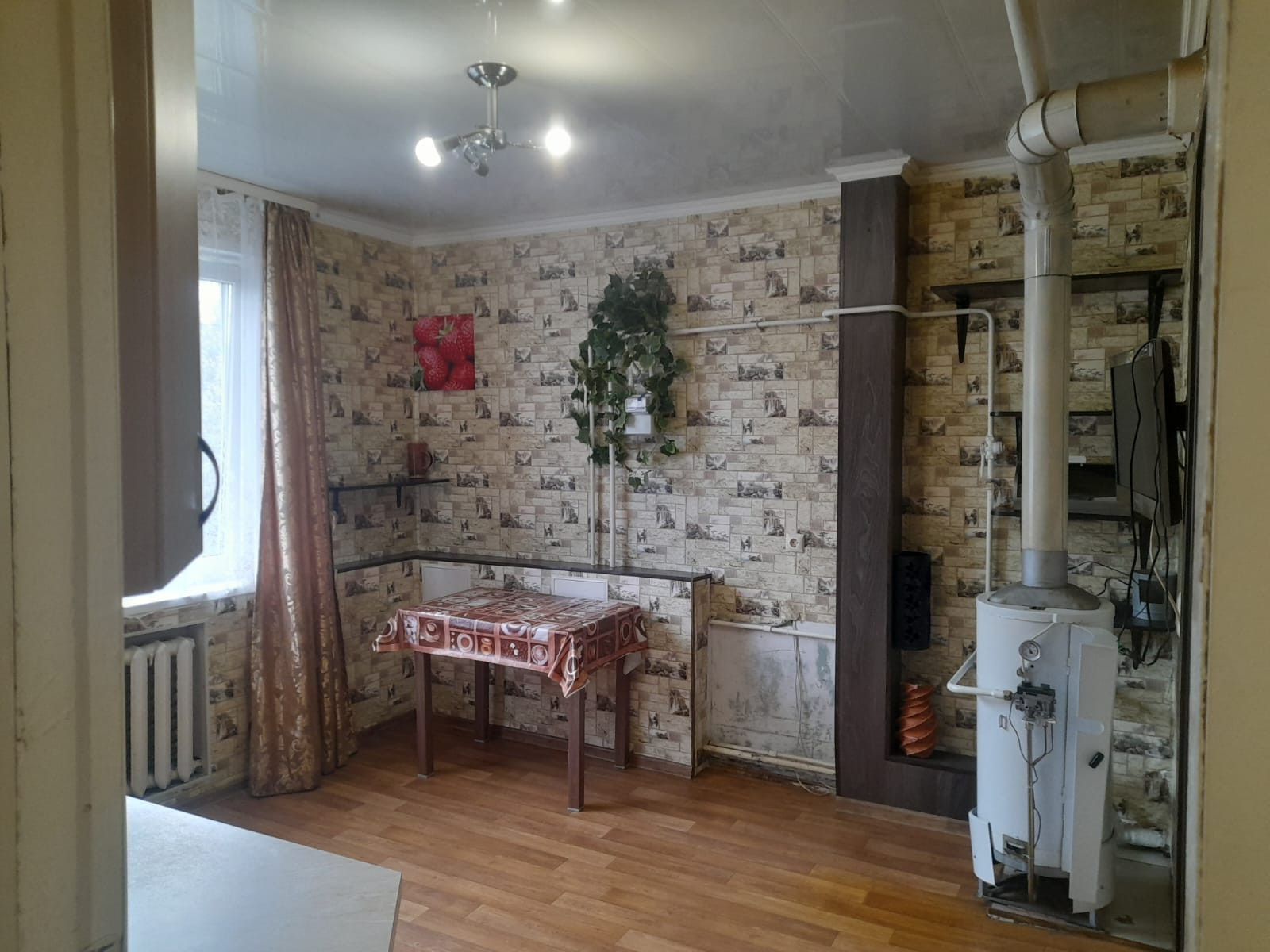 Продам теплую и уютную квартиру на втором этаже в деревянном доме. Индивидуальное отопление, горячая вода через котел. Есть парковочное место перед подъездом. До автобусной остановки 5 минут пешком. Школа через дорогу. Мебель на фото все остается