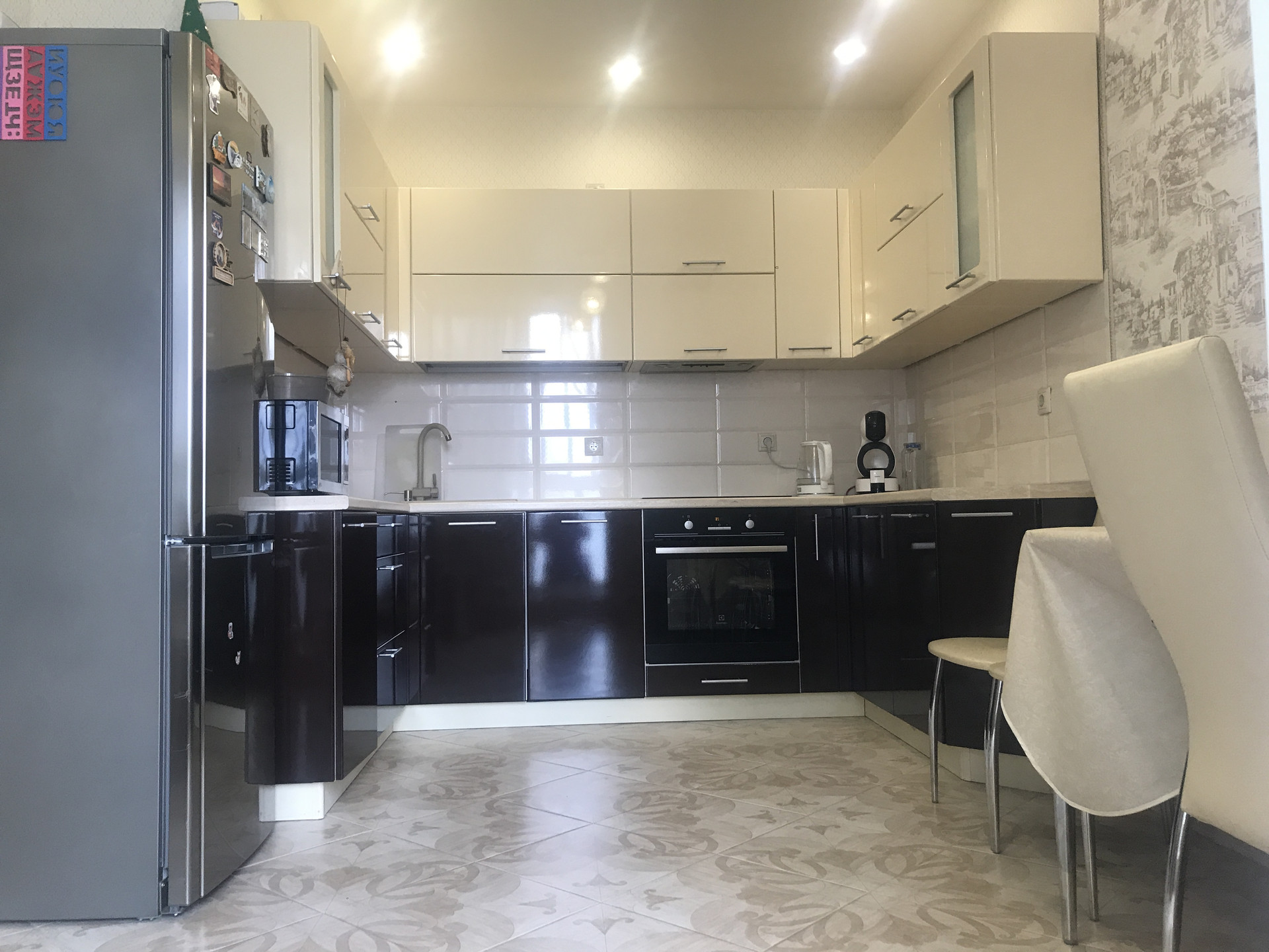 Остается встроенная кухня (посудомоечная машина, духовой шкаф, варочная панель)