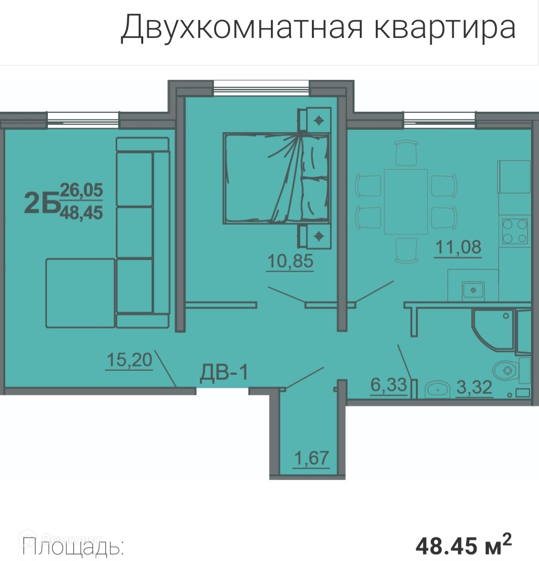 Общая площадь 48.45 м2