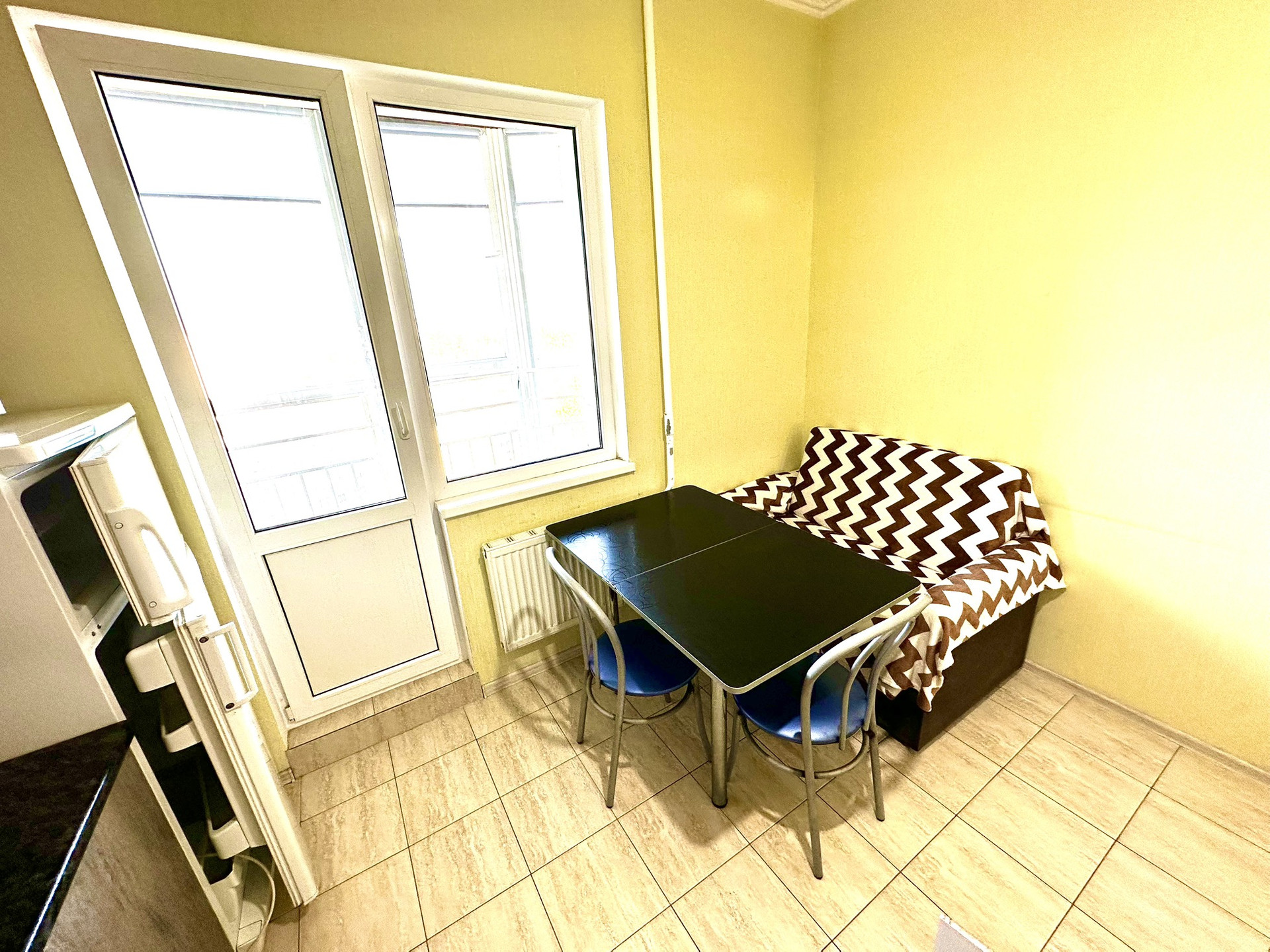 На лоджии можно легко разместить небольшой диван и организовать дополнительную зону для отдыха или работы.