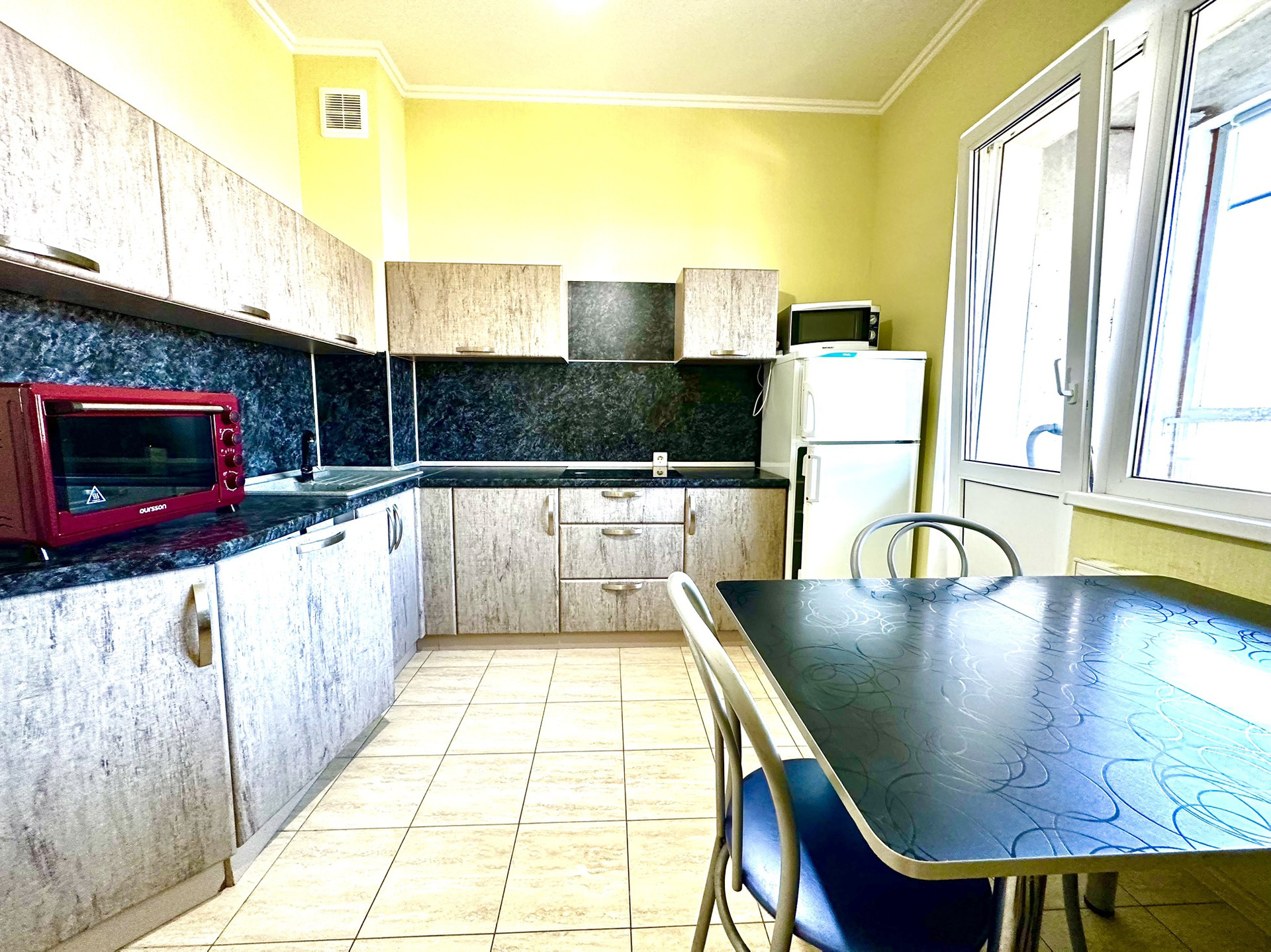 При продаже практически вся мебель и техника остается: кухня, варочная панель, холодильник, стиральная машина, духовка, прихожая, ванный гарнитур, угловой шкаф, шкаф, стеллаж, стол, стулья, диваны.