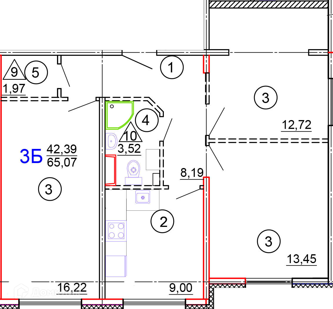 Общая площадь 65.07 м2