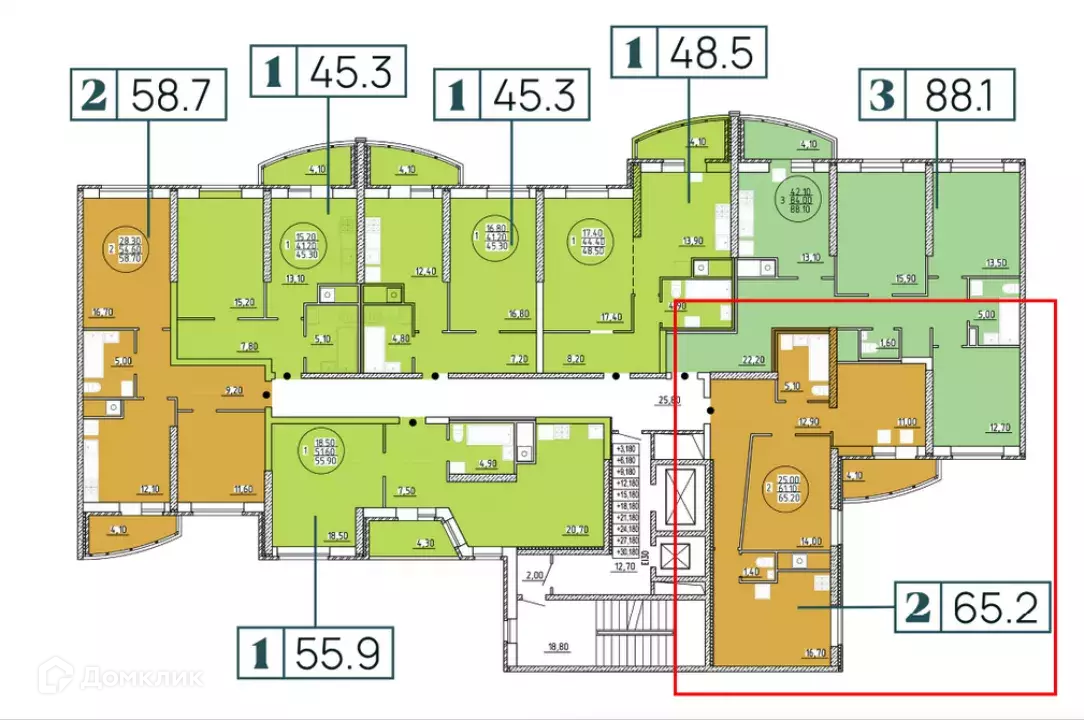 Общая площадь 65.2 м2