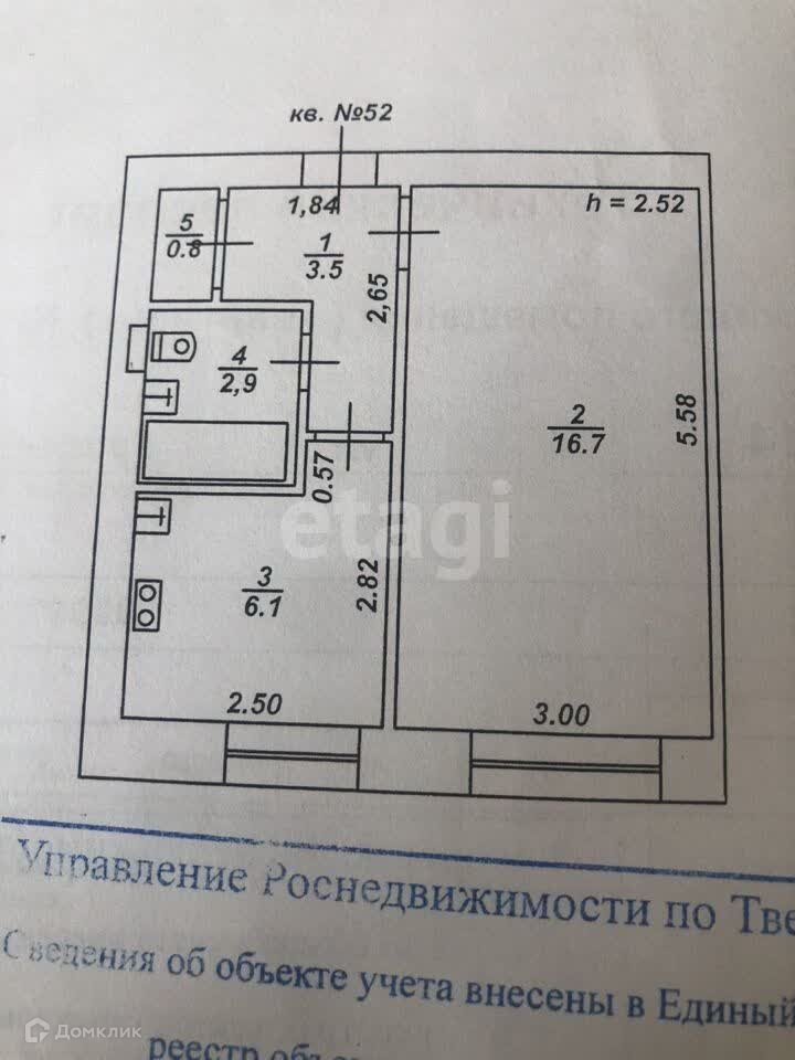 1-комнатная квартира, 30 м2, этаж 1 / 5, на продажу в Твери, улица Ерофеева, 14