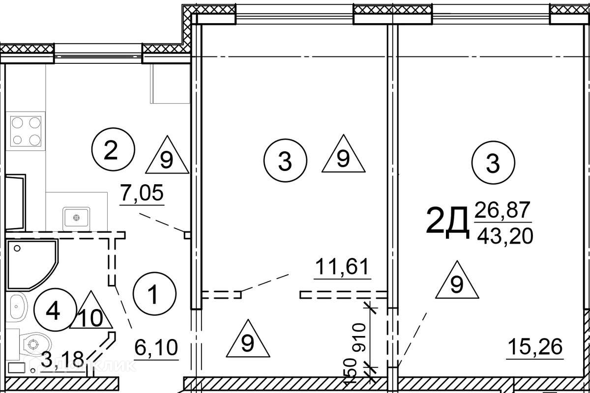 Жилая площадь 26.87 м2