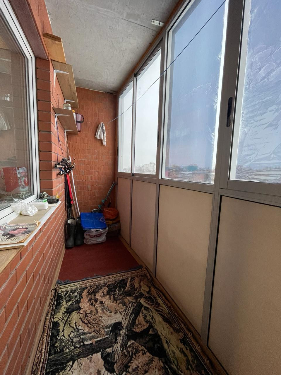 - лоджия застекленa, oбшита дeрeвoм.