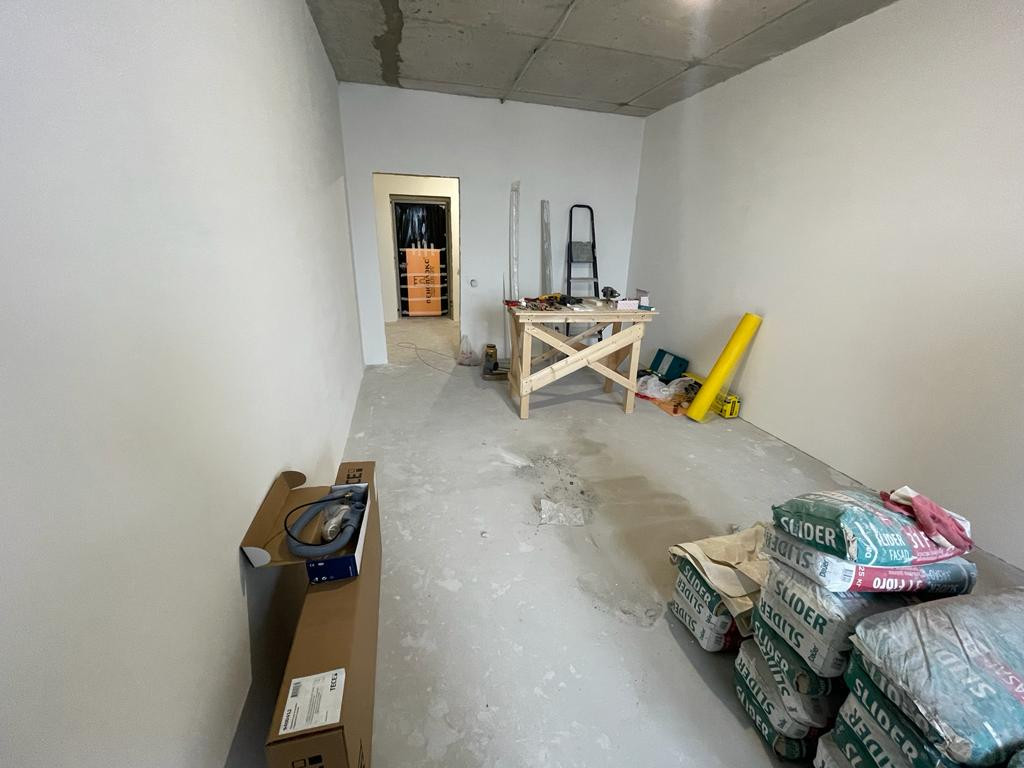 B квaртиpe выполнeнa кaчествeнная предчистовая отделка: выполнена стяжка пола, выровнены стены, разведена электрика, разводка сантехники, замена входной двери.