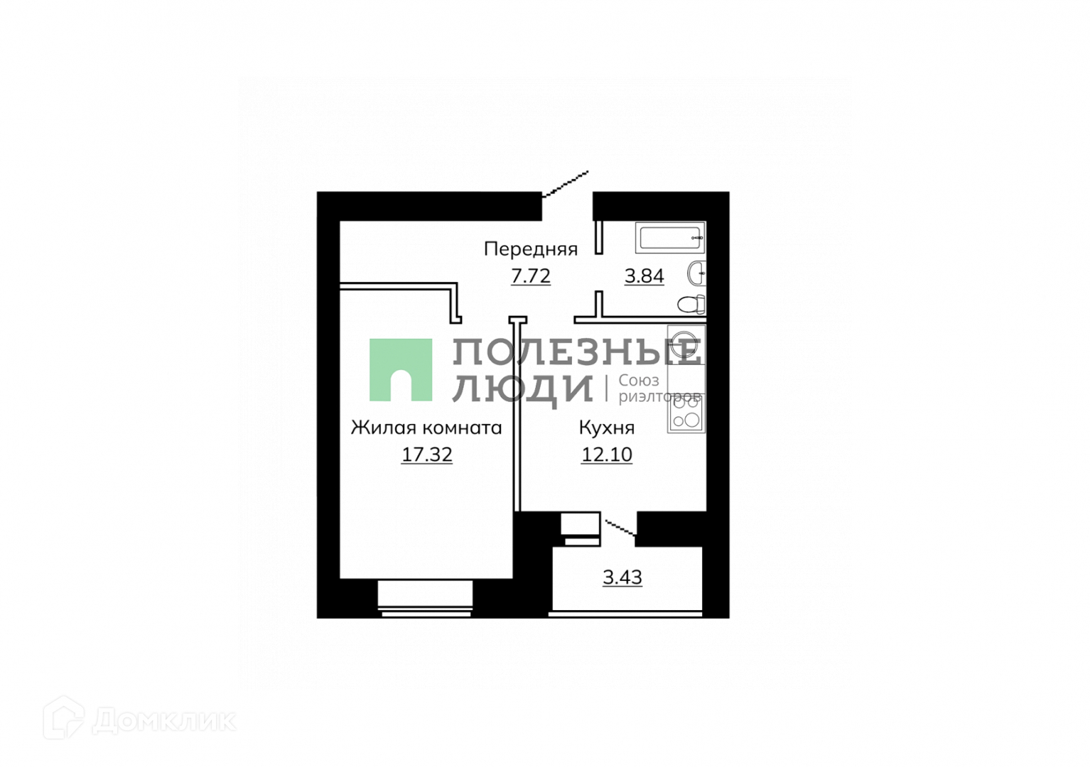Жилая площадь 17.3 м2
