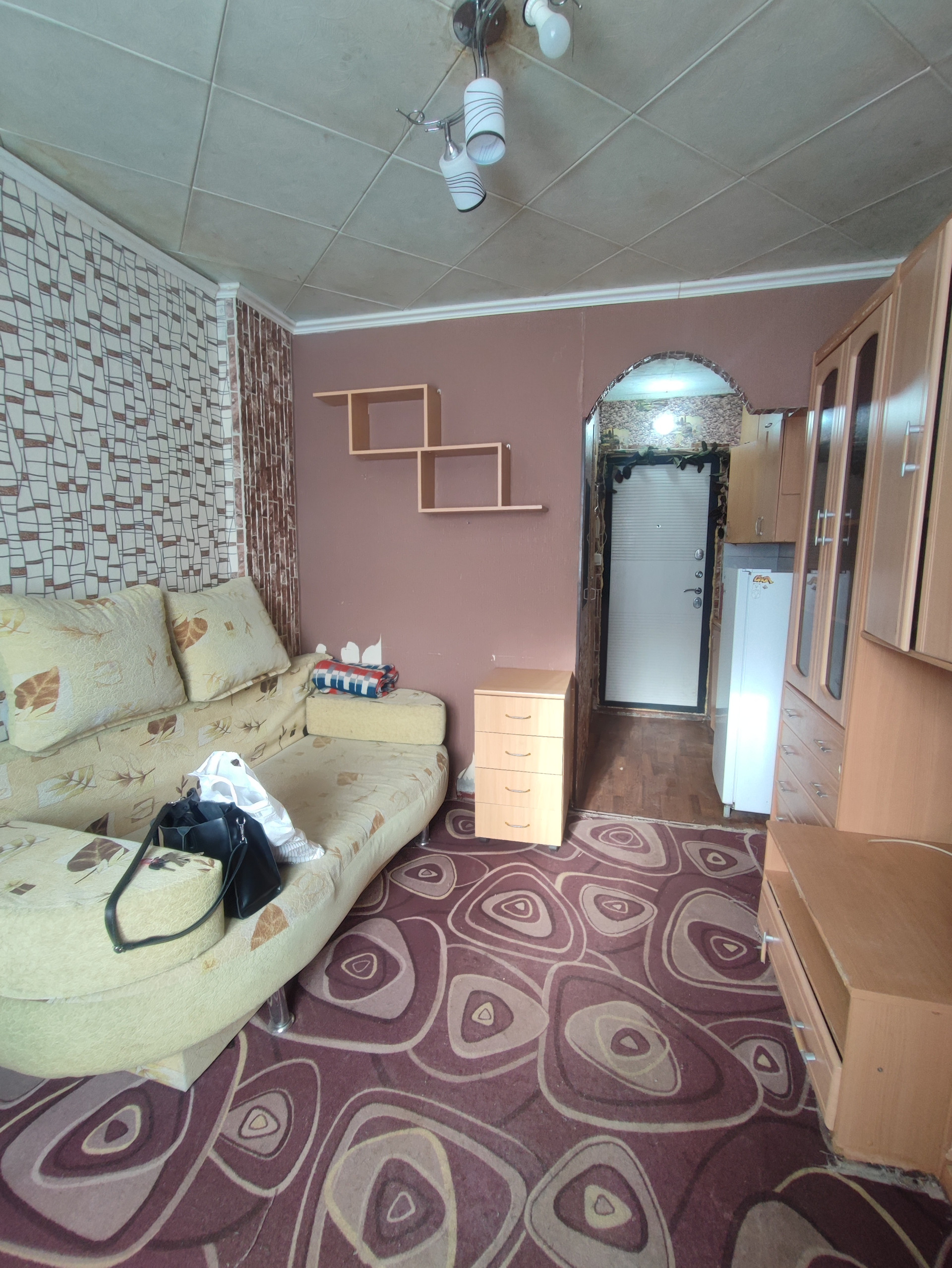ПРОДАМ СТУДИЮ 16,5 кв.м.на 1/9 эт. панельного дома (бывшее общежитие). Окно ПВХ (выходит на южную сторону), совмещенный санузел. Центральное отопление, горячая, холодная вода, центральная канализация. Новая входная дверь. Оставим всю мебель, бытовую технику (кроме холодильника).