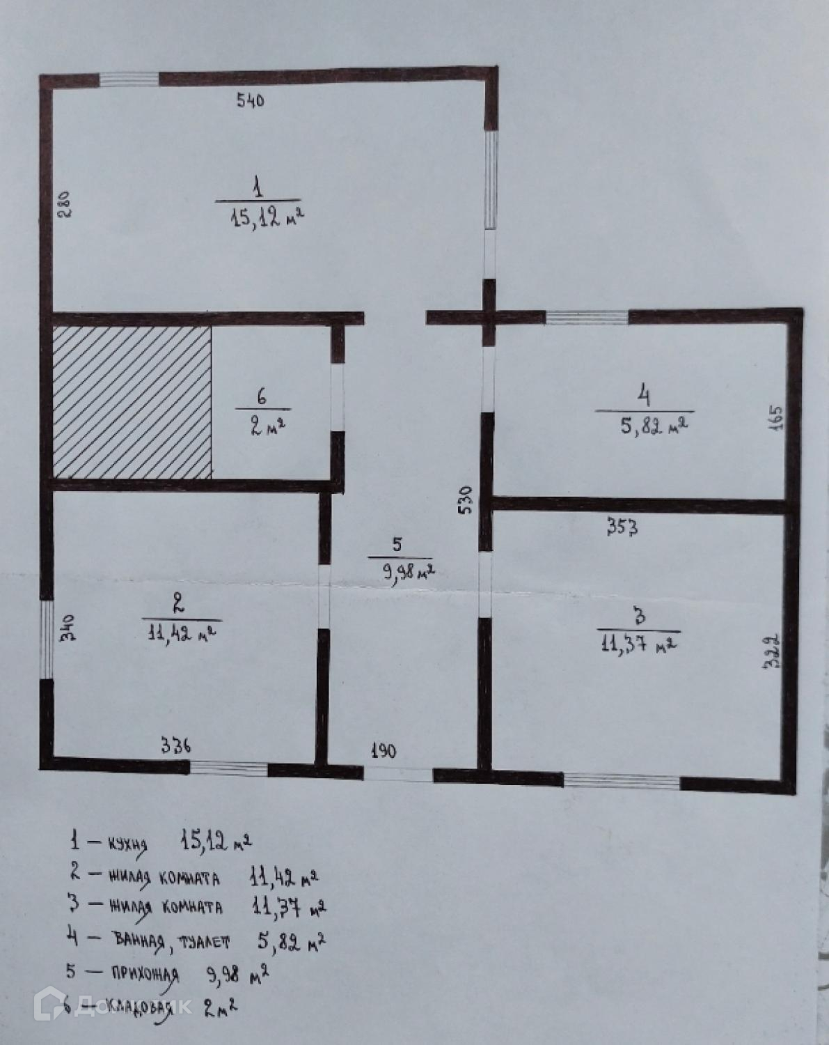 Общая площадь 53,7 м2, комнаты изолированные, из просторной кухни есть выход во двор, большой санузел, кладовка.