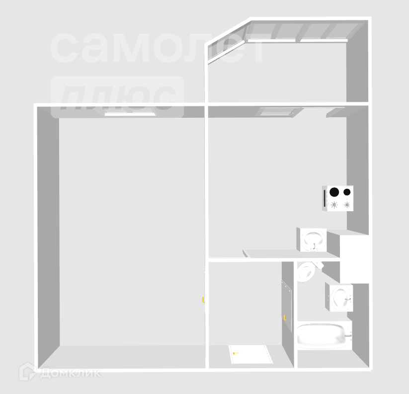 - Площадь без лоджии – 36,3 кв.м.
