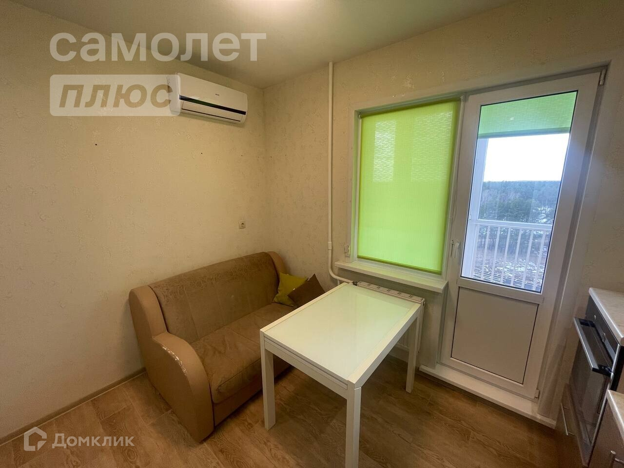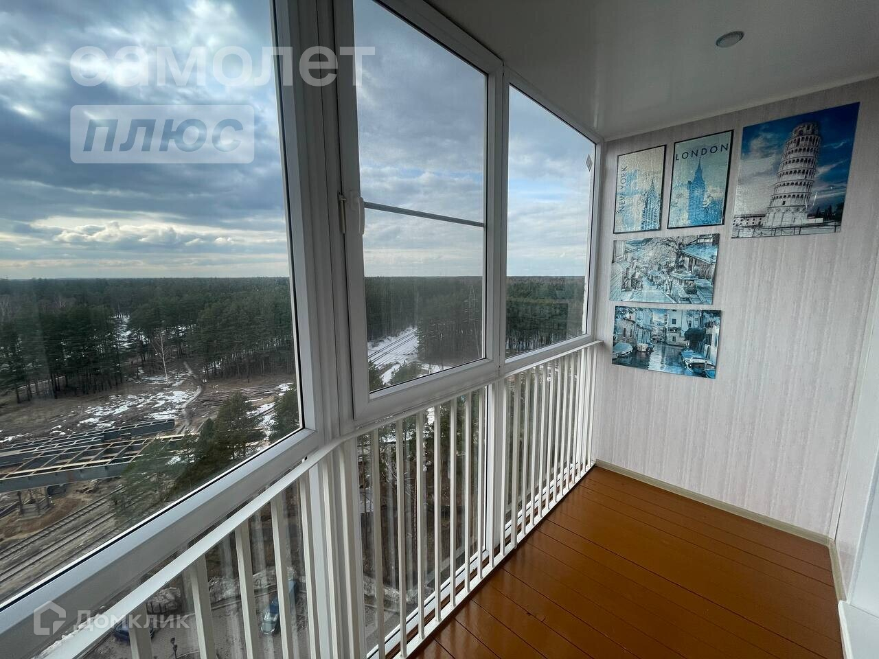 - На лоджии можно легко разместить небольшой диван и организовать дополнительную зону для отдыха или работы. Из окон открывается красивый вид на лес.