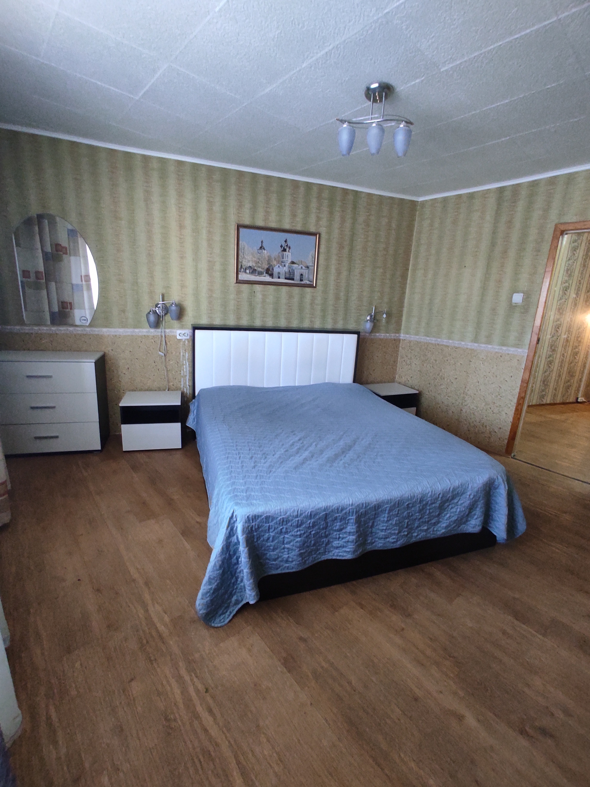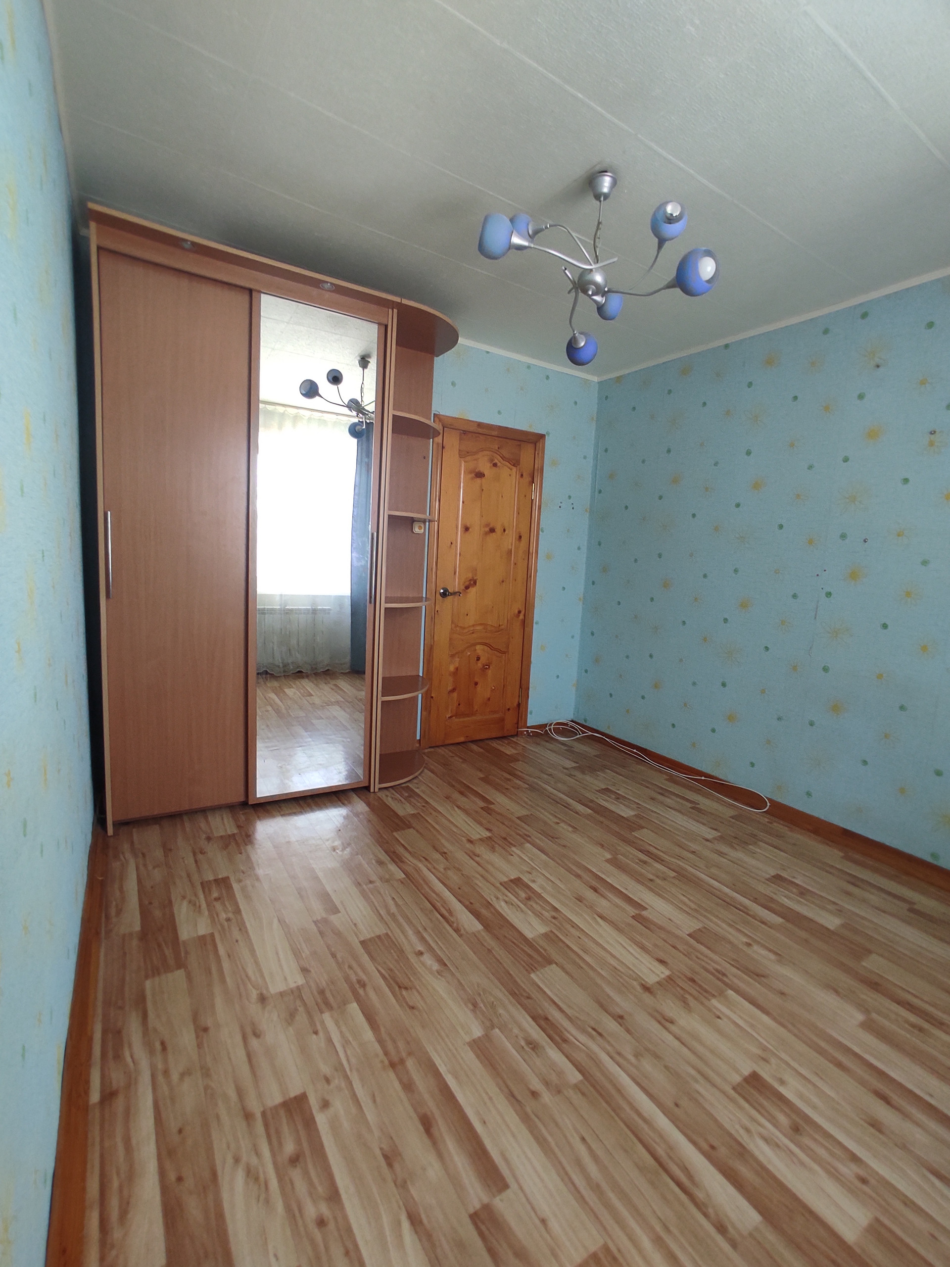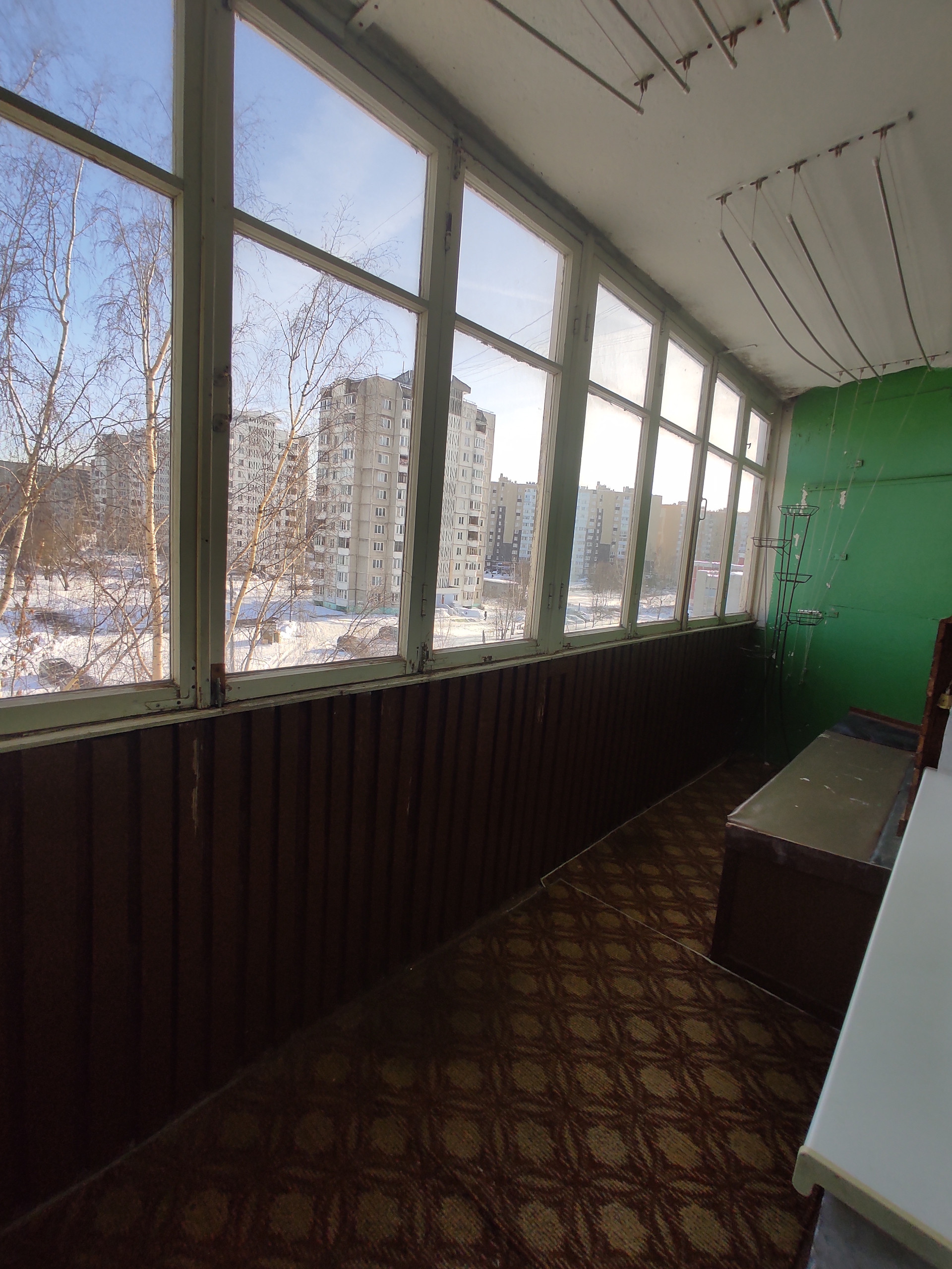 В спальне лоджия 3 метра - застеклена дерево.